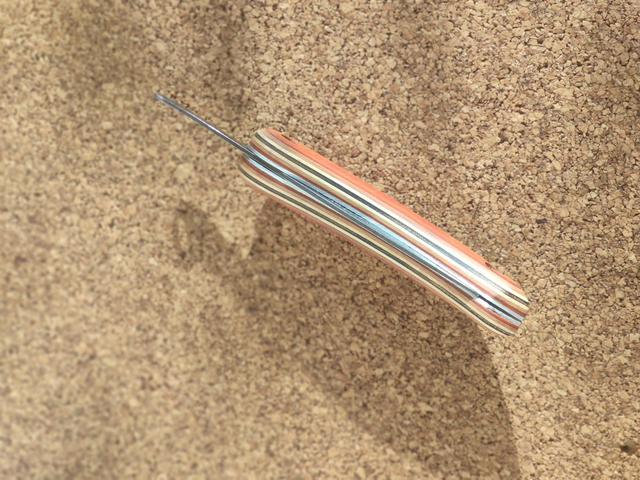 Découvre Geneviève, fabriqué à partir de planches de skate recyclées. Il sera une pièce artisanale qui apportera une touche originale à ta vie. En plus de son aspect esthétique ce couteau respectueux de l'environnement s'inscrit dans une démarche valorisant des matériaux recyclés, offrant ainsi une Troisième Vie à des planches de skate à la retraite.